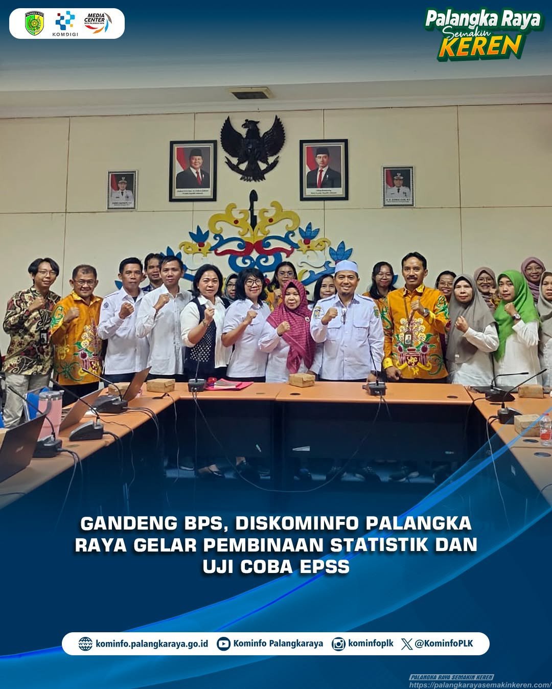 Palangka Raya Semakin Keren – Dinas Komunikasi, Informatika, Statistik, dan Persandian (Diskominfo) Kota Palangka Raya menjalin kerja sama strategis dengan Badan Pusat Statistik (BPS) dalam rangka meningkatkan kualitas tata kelola data statistik sektoral. Kegiatan ini diwujudkan melalui pelaksanaan pembinaan statistik dan uji coba Evaluasi Penyelenggaraan Statistik Sektoral (EPSS) pada Rabu, 9 Juli 2025, bertempat di Aula Rahan Pumpung Hapat Kantor Bapperida Kota Palangka Raya.