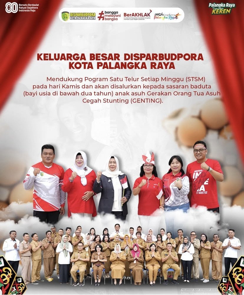 Palangka Raya Semakin KEREN – Dinas Pariwisata, Kebudayaan, Pemuda dan Olahraga (Disparbudpora) Kota Palangka Raya menunjukkan komitmennya dalam mendukung upaya pencegahan stunting melalui partisipasi pada Program Satu Telur Setiap Minggu (STSM). Program ini dilaksanakan setiap hari Kamis dengan penyaluran telur kepada balita usia di bawah dua tahun yang menjadi anak asuh dalam Gerakan Orang Tua Asuh Cegah Stunting (GENTING).(Kamis,21/8/25)