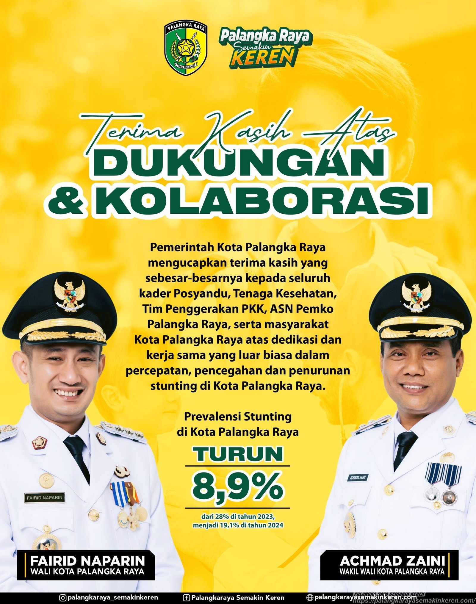 “Ke depan, kami ingin Palangka Raya jadi rujukan nasional dalam penanganan stunting. Mari kita lanjutkan kolaborasi ini dengan semangat yang sama—demi generasi Palangka Raya yang semakin keren, sehat, dan berdaya saing,” tutup Fairid.
