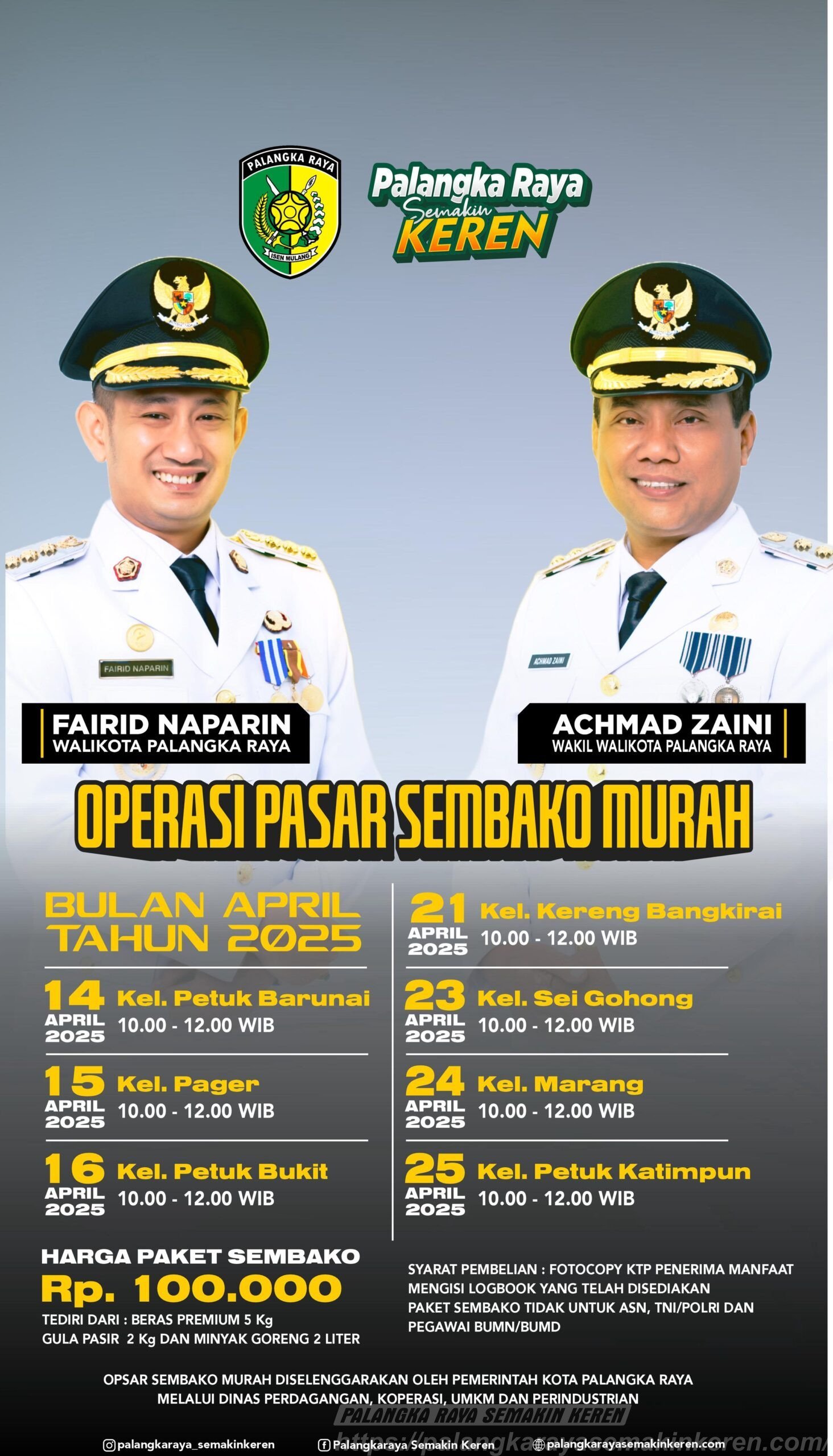 PALANGKA RAYA SEMAKIN KEREN – Pemerintah Kota Palangka Raya kembali menunjukkan kepedulian terhadap masyarakat berpenghasilan rendah dengan menggelar Operasi Pasar Murah di tujuh kelurahan sepanjang April 2025. Kegiatan ini dilaksanakan oleh Dinas Perdagangan, Koperasi, UKM dan Perindustrian Kota Palangka Raya sebagai bagian dari strategi pengendalian inflasi dan menjaga daya beli warga, khususnya Rumah Tangga Miskin (RTM).(8/4/2025)