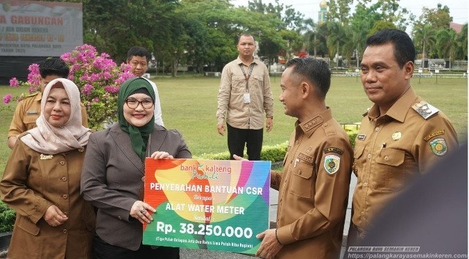 PALANGKA RAYA SEMAKIN KEREN – Komitmen Pemerintah Kota Palangka Raya untuk meningkatkan kualitas layanan publik terus ditunjukkan secara konkret. Salah satunya melalui sinergi bersama dunia usaha yang diwujudkan lewat bantuan Corporate Social Responsibility (CSR) dari Bank Kalteng berupa perangkat water meter senilai Rp38.250.000 yang diserahkan secara simbolis kepada Wali Kota Fairid Naparin, usai upacara peringatan Hari Lahir Pancasila di halaman Kantor Wali Kota, (2/6/2025).