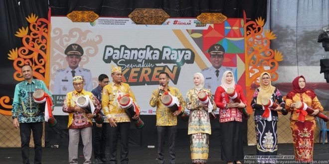 PALANGKA RAYA SEMAKIN KEREN – Komitmen Pemerintah Kota Palangka Raya dalam melestarikan budaya lokal dan mempererat kohesi sosial kembali diwujudkan melalui perhelatan Festival Palangka Raya 2025. Kegiatan tahunan ini resmi dibuka oleh Wali Kota Palangka Raya, Fairid Naparin, dengan simbolis pemukulan Katambung, Kamis (24/04/2025), di halaman Kantor Wali Kota Palangka Raya.
